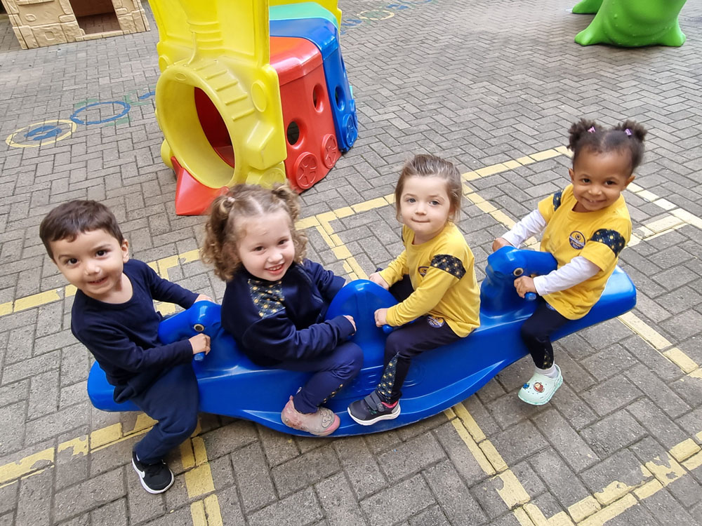 O Berçário é um espaço onde tudo se transforma em aprendizado! Cada som, cor, gesto e movimento é uma nova descoberta, que desperta nos pequenos a curiosidade e o desejo de explorar o mundo. Aqui, o brincar é o ponto de partida para o desenvolvimento físico, cognitivo, social e emocional.